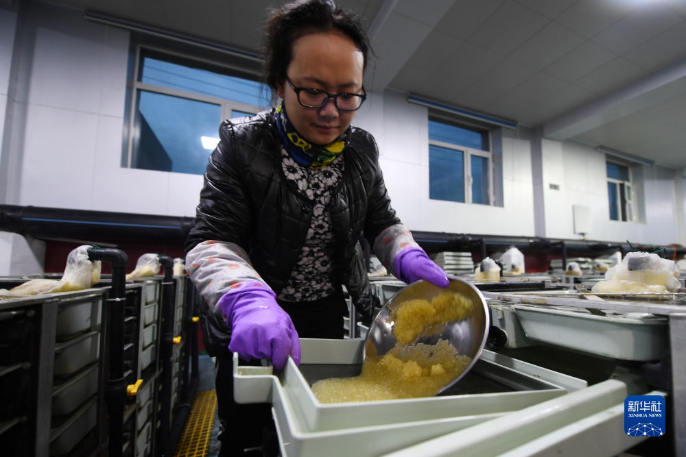 6月29日,在青海湖裸鯉沙柳河泉吉河增殖實(shí)驗(yàn)站的繁育車(chē)間,工作人員將采集的魚(yú)卵放入孵化盒中。新華社記者 范培珅 攝