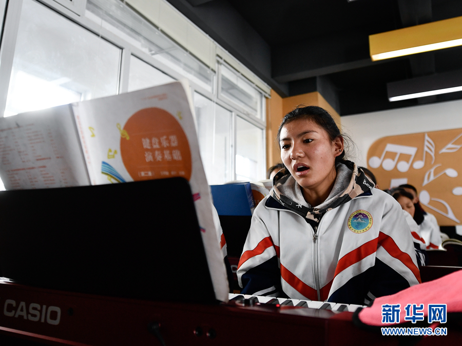 在果洛藏族自治州職業(yè)技術(shù)學(xué)校,2020級(jí)學(xué)前教育專業(yè)學(xué)生楊央在上音樂課。(資料圖)新華社記者 張龍 攝