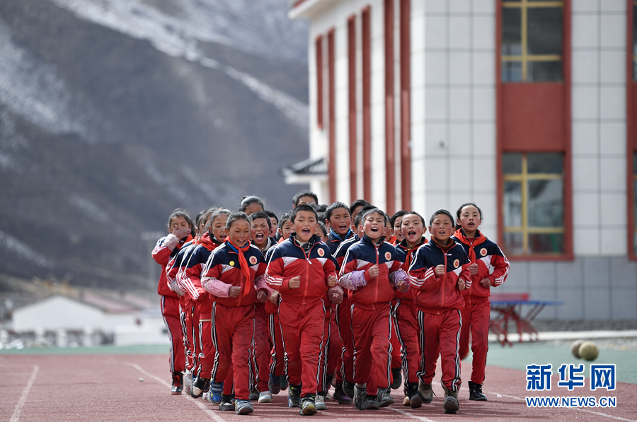 在果洛藏族自治州甘德縣下貢麻鄉(xiāng)寄宿制中心小學(xué),學(xué)生在上體育課。(資料圖)新華社記者 張龍 攝
