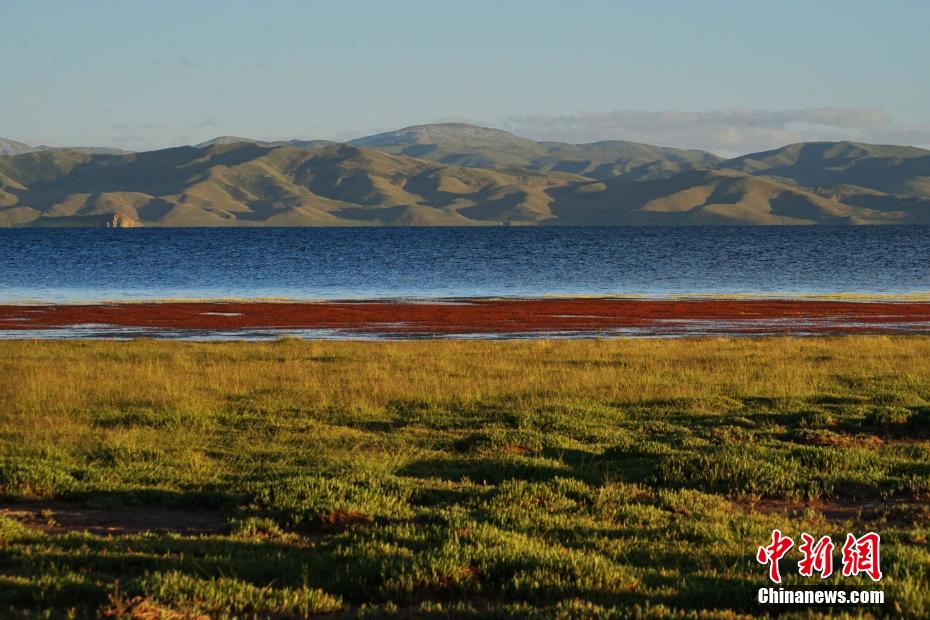 冬格措納湖位于青海省果洛藏族自治州瑪多縣,是一片地處海拔4100多米的淡水湖。夏日的冬格措納湖,湖水湛藍(lán),宛如跌落群山之中的“藍(lán)寶石”。紅、黃、綠色的草灘與湖水相互映襯,美景如畫。圖為冬格措納湖美景如畫。 馬銘言 攝