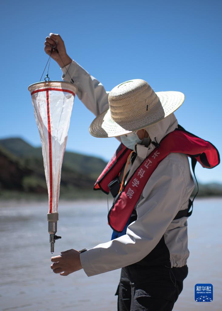 7月24日,長江科學(xué)院科考隊(duì)員李魯?shù)ぴ跒憸娼磪^(qū)的扎曲采集浮游動(dòng)物樣本。新華社記者 肖藝九 攝