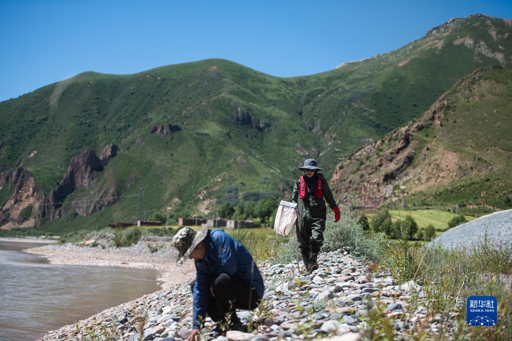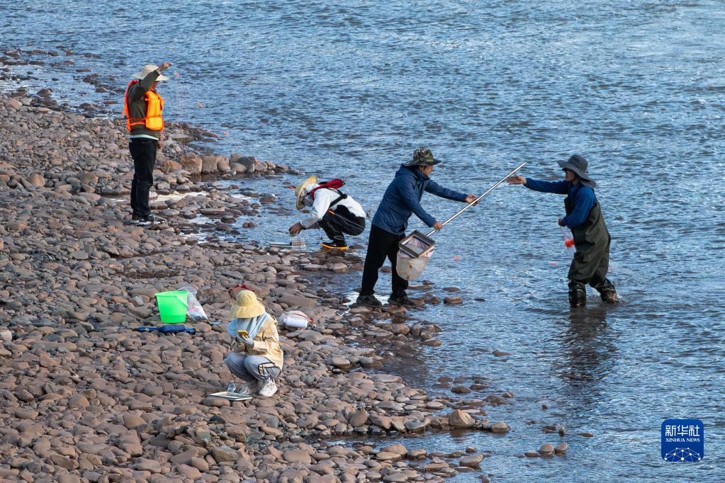 7月24日,長江科學(xué)院科考隊(duì)員在瀾滄江源區(qū)的雜多進(jìn)行水生生物樣本采集。新華社記者 肖藝九 攝