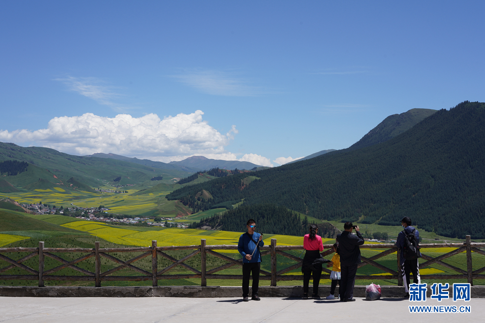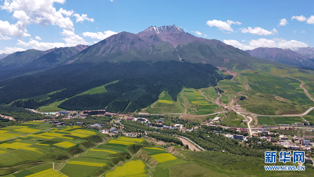盛夏時節(jié),青海省海北藏族自治州祁連縣的卓爾山景區(qū)綠意盎然,風(fēng)景如畫。