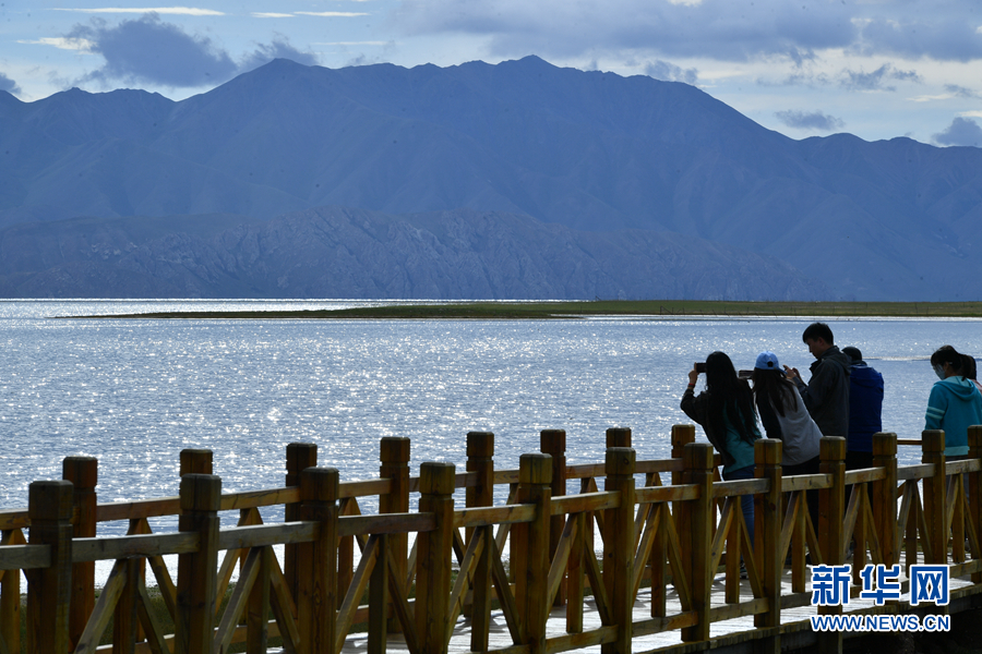 8月14日,游客行走在冬格措納湖岸畔的木棧道上。新華網(wǎng) 卡婭梅朵 攝
