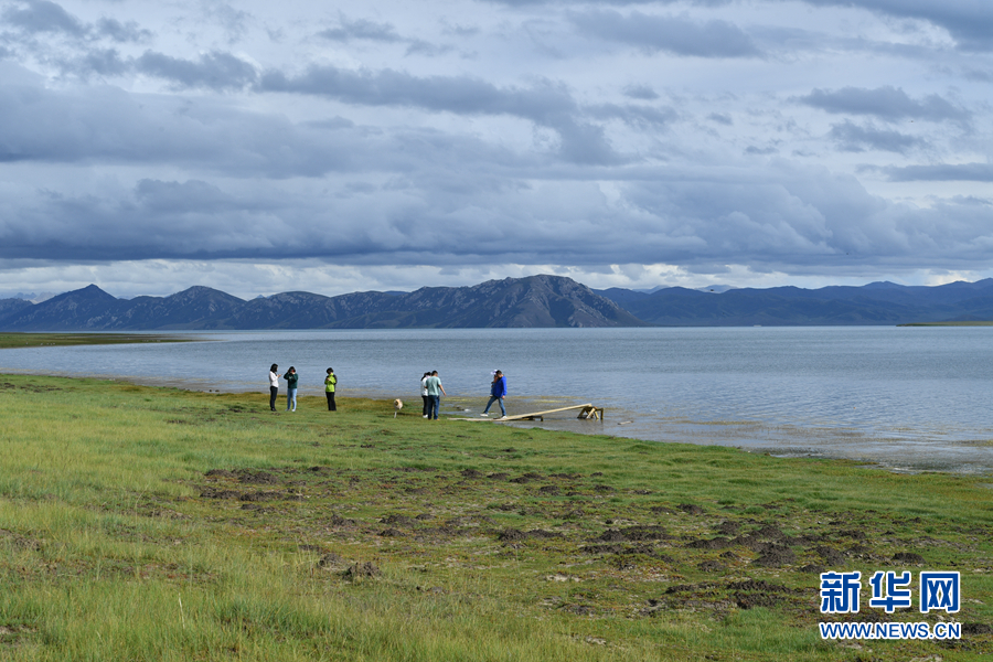 8月14日,游客在冬格措納湖岸畔拍照、游玩。新華網(wǎng) 卡婭梅朵 攝