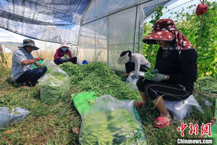 八月中旬,在四川省阿壩藏族羌族自治州壤塘縣的熱布卡蔬菜基地,五月種植的第一批四季豆(學(xué)名菜豆,下同)正值豐收。50歲的陳老會年初從云南來到四川壤塘工作,她和工友們將剛采摘的四季豆篩選裝袋,近五十斤重的包裝袋整齊鋪滿地面?!拔覀兿挛绮烧氖卟?,第二天早上就能出現(xiàn)在成都的市場上?!彼^也不抬地忙著手中的活。