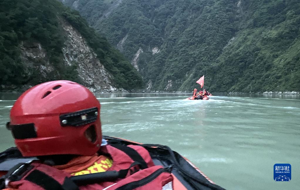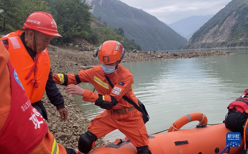 9月6日,四川森林消防總隊(duì)甘孜支隊(duì)消防員乘橡皮艇進(jìn)入瀘定縣得妥鎮(zhèn)紫雅場村。新華社 魏紅 攝