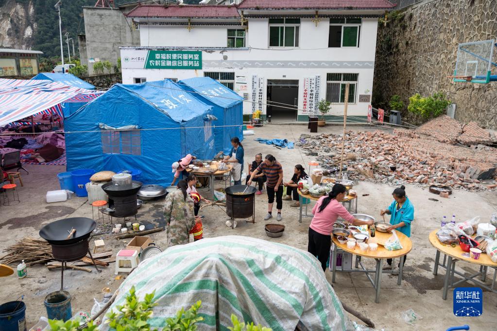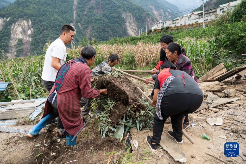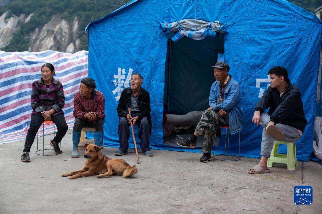 9月7日,在雅安市石棉縣王崗坪彝族藏族鄉(xiāng)幸福村二組,村民們?cè)趲づ裢庑菹ⅰP氯A社記者 才揚(yáng) 攝