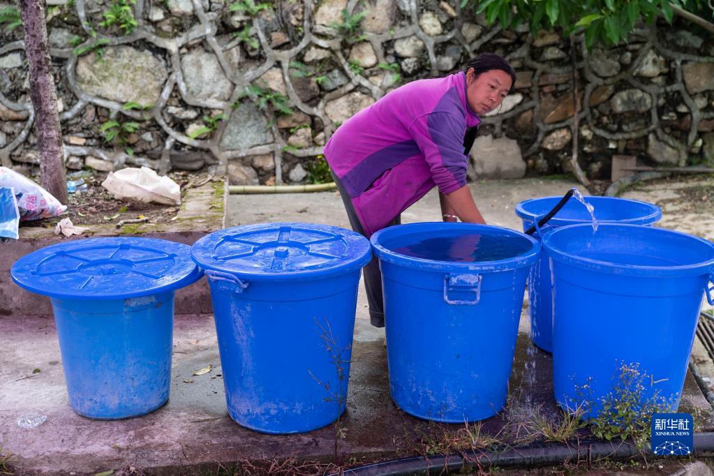 9月7日,在雅安市石棉縣王崗坪彝族藏族鄉(xiāng)幸福村二組,一名村民在接山泉水,這股山泉水是村民們從山上引下來(lái)的。新華社記者 才揚(yáng) 攝
