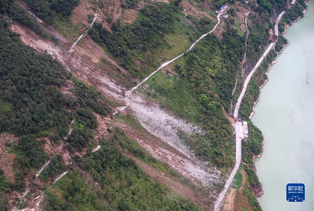 這是9月7日拍攝的雅安市石棉縣王崗坪彝族藏族鄉(xiāng)幸福村二組附近的照片,能看到山體多處滑坡(無(wú)人機(jī)照片)。新華社記者 才揚(yáng) 攝