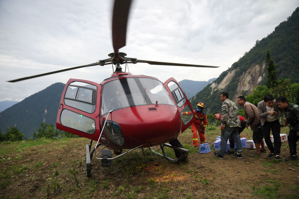 7日一早,我和同事從水路轉(zhuǎn)空路,搭乘滿載食品和帳篷等救援物資的直升機(jī)挺進(jìn)草科鄉(xiāng),彼時(shí)各類救援物資和通訊設(shè)備正陸續(xù)開始送往草科鄉(xiāng)及深山里的幾個(gè)村子。
