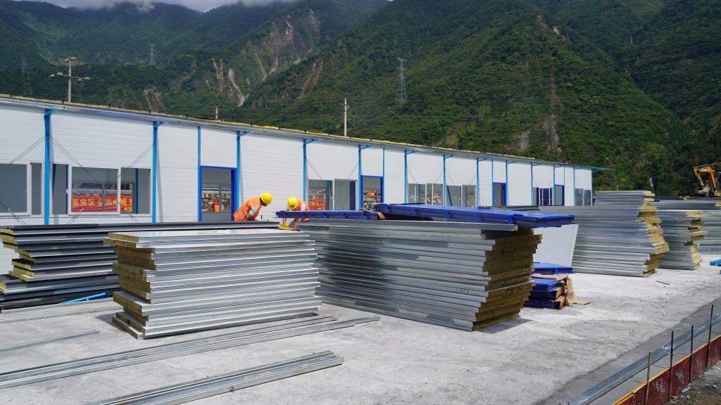 在得妥鎮(zhèn)天池山村繁榮集中過(guò)渡安置點(diǎn)工地里,200多名施工人員正在抓緊進(jìn)行安置點(diǎn)的板房安裝?!澳壳拔覀円淹瓿?20套板房安裝,預(yù)計(jì)受災(zāi)群眾可于10月初入住?!笨偝邪鼏挝蝗A西集團(tuán)四川省建筑機(jī)械化工程有限公司項(xiàng)目負(fù)責(zé)人王偉介紹,該安置點(diǎn)還將配備公共衛(wèi)生間、公共浴室、廚房、健身器材等設(shè)施,為受災(zāi)群眾在過(guò)渡安置期間創(chuàng)造安全便利的生活條件。