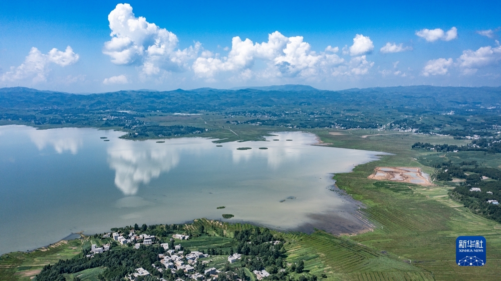 貴州草海國家級自然保護(hù)區(qū),退耕還湖成效明晰可見(2022年7月8日攝,無人機(jī)照片)。新華社記者 陶亮 攝