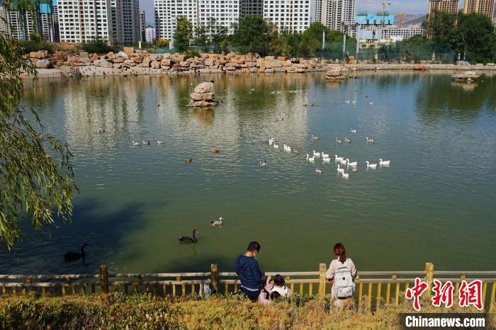 圖為游客在西寧野生動(dòng)物園內(nèi)觀賞水鳥。馬銘言 攝