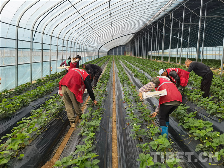 中國(guó)西藏網(wǎng)訊 時(shí)下,在四川省甘孜藏族自治州理塘縣濯?,F(xiàn)代農(nóng)業(yè)產(chǎn)業(yè)園區(qū),120畝草莓經(jīng)過(guò)100天的生長(zhǎng)后迎來(lái)了收獲季。走進(jìn)園區(qū)康呷村種植基地,大棚里的草莓長(zhǎng)勢(shì)喜人,當(dāng)?shù)?0多名農(nóng)牧民群眾正忙著梳葉、采摘,大棚里四處洋溢著豐收的喜悅?!耙郧拔覀兂朔N青稞、土豆之外,其余大多數(shù)時(shí)間都到處去打臨時(shí)工,收入也很不穩(wěn)定,一年到頭只能掙幾千元錢。”現(xiàn)年25歲的濯桑鄉(xiāng)漢戈村民格絨志瑪說(shuō)道。
