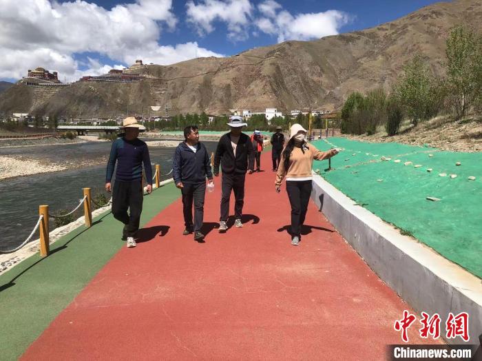 圖為寧樣(右一)檢查玉樹(shù)市樹(shù)木生長(zhǎng)情況。玉樹(shù)市委宣傳部供圖