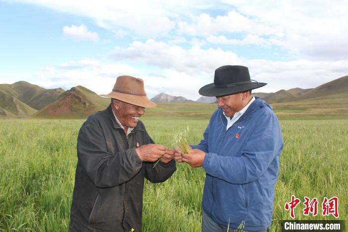 資料圖為玉樹(shù)市上拉秀鄉(xiāng)干部查看燕麥試種情況。玉樹(shù)市委宣傳部供圖
