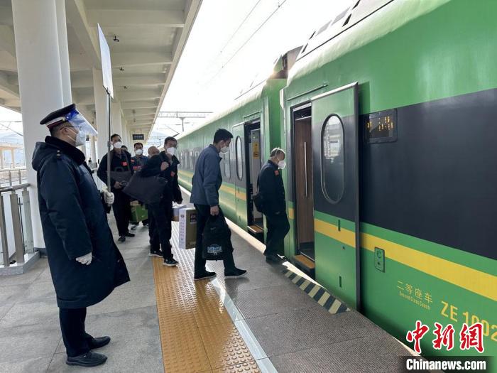 為搬遷民眾排隊(duì)乘車(chē)。蘭州鐵路局供圖