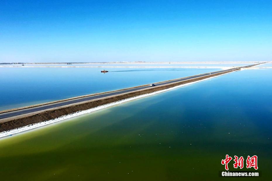 高原深秋,攝影愛好者在素有中國聚寶盆之稱的青海省海西蒙古族藏族自治州,拍攝察爾汗鹽湖的秋日美景。畫面中“萬丈鹽橋”“漂浮”在湖面上,翠綠或是淺綠色的鹵水好似盛在“聚寶盆”里的寶玉,秀色可餐。由于水分不斷蒸發(fā),鹽湖上形成堅硬的鹽蓋,青藏鐵路和青藏公路直接修建于鹽蓋之上。察爾汗鹽湖蘊藏有豐富的氯化鈉、氯化鉀、氯化鎂等無機鹽,總儲量達20多億噸,為中國礦業(yè)基地之一。 包雷 攝