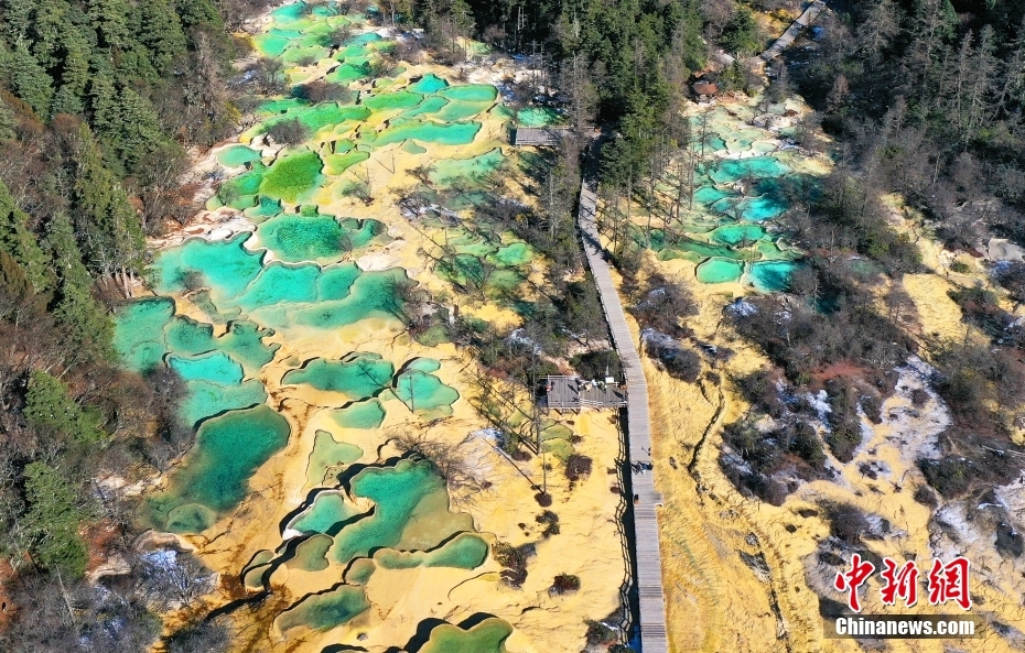 11月18日,航拍四川省阿壩藏族羌族自治州松潘縣黃龍景區(qū)風(fēng)光。(無人機照片) 中新社記者 安源 攝