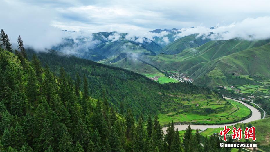 7月11日,一場降雨過后,云霧如潔白的哈達飄落在青海省果洛藏族自治州班瑪縣瑪可河國家森林公園山頭,與樹木、河流、梯田相互映襯,自然風(fēng)景美如畫。[詳細]