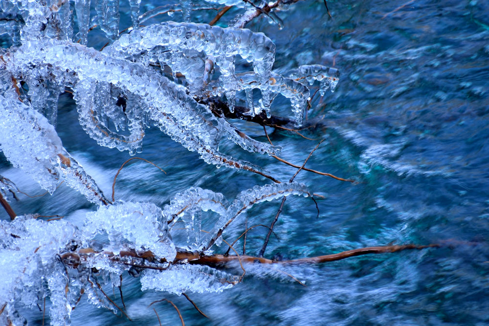 “潔凈的空氣和水是形成藍(lán)冰的基礎(chǔ)條件,隨著氣溫持續(xù)降低,冰層厚度越厚,藍(lán)冰也會(huì)格外明顯。”肖維陽(yáng)說(shuō)。