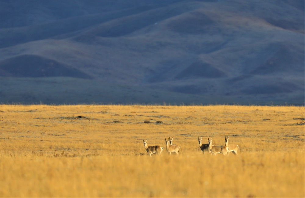 一群藏原羚在四川若爾蓋濕地國家級自然保護區(qū)里徜徉(2020年10月24日攝)。新華社 王冀川 攝