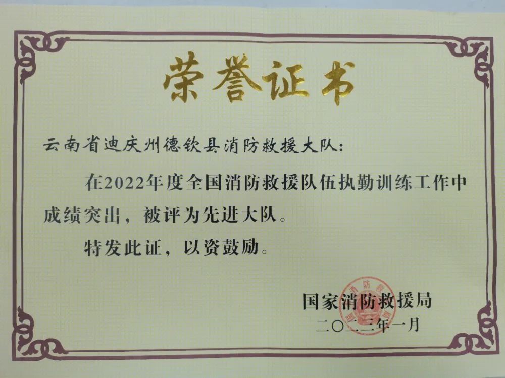 喜報(bào):德欽縣消防救援大隊(duì)獲國家消防救援局表彰