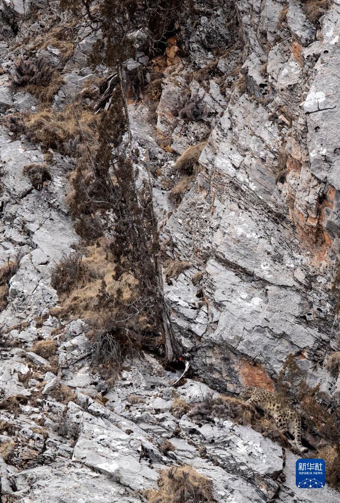 2月21日,在青海省玉樹藏族自治州雜多縣昂賽鄉(xiāng)境內(nèi)的昂賽大峽谷內(nèi),一只雪豹正在活動。新華社記者 張宏祥 攝