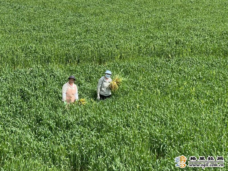 香格里拉市尼西鄉(xiāng)幸福村冬小麥、冬播油菜長勢喜人,田間地頭一片綠油油的景象。圖為村民正在田里除草。