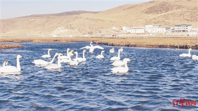 圖為天鵝結(jié)伴游弋散步。俄日藏俄 攝