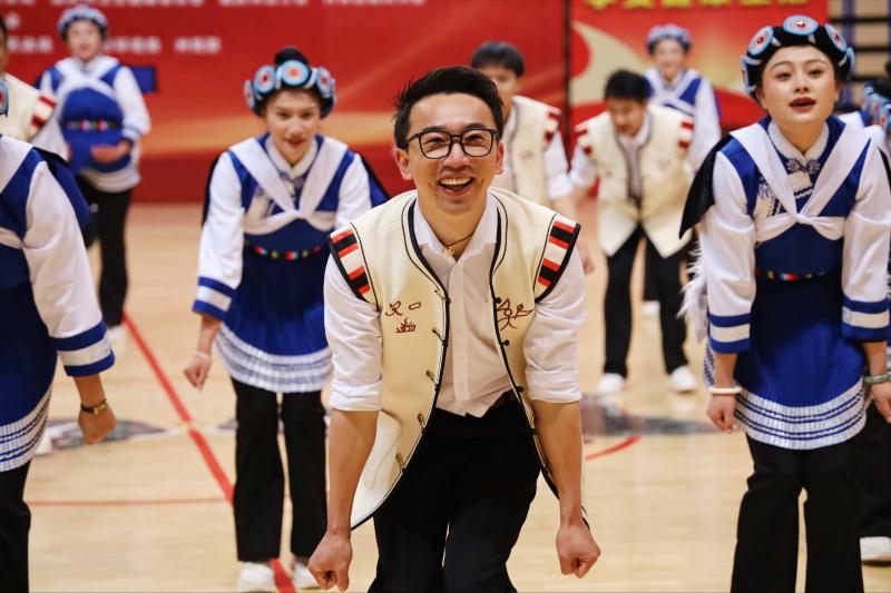 來自州級各委辦局、各企事業(yè)單位、各人民團體的16支代表隊參賽表演。 伴隨著輕松明快的音樂,《舞動高原》《鐵肩道義·踢踏前行》《桃香陶韻》《律動青春·點贊新時代》《斗嘎嘞》《花木“藍”焰》等節(jié)目逐一亮相,明艷的民族服飾,熱情的動作展演,贏得現場掌聲不斷。
