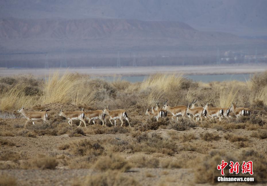 圖為都蘭湖國家濕地公園內(nèi)成群的鵝喉羚。馬銘言 攝