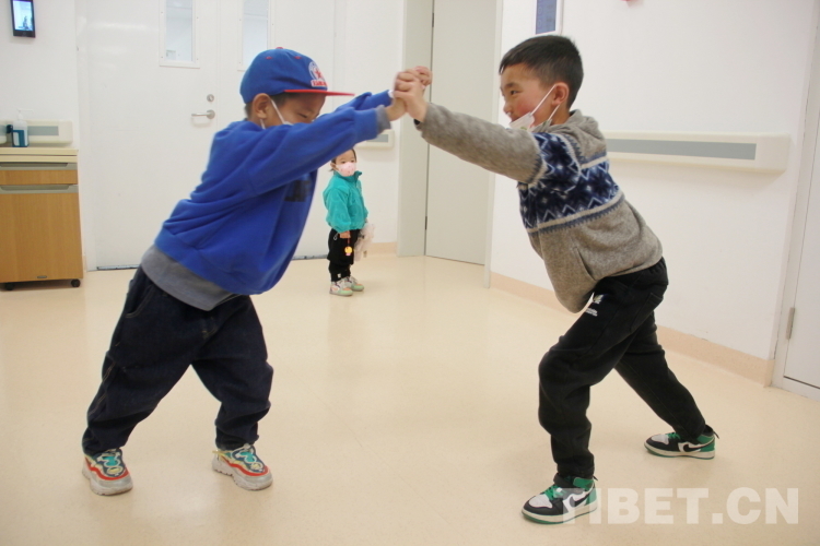 圖為3月30日,即將從中國醫(yī)學科學院整形外科醫(yī)院出院的青海果洛患兒們正在一起玩耍,多日相處,彼此間已成為好朋友攝影:劉莉