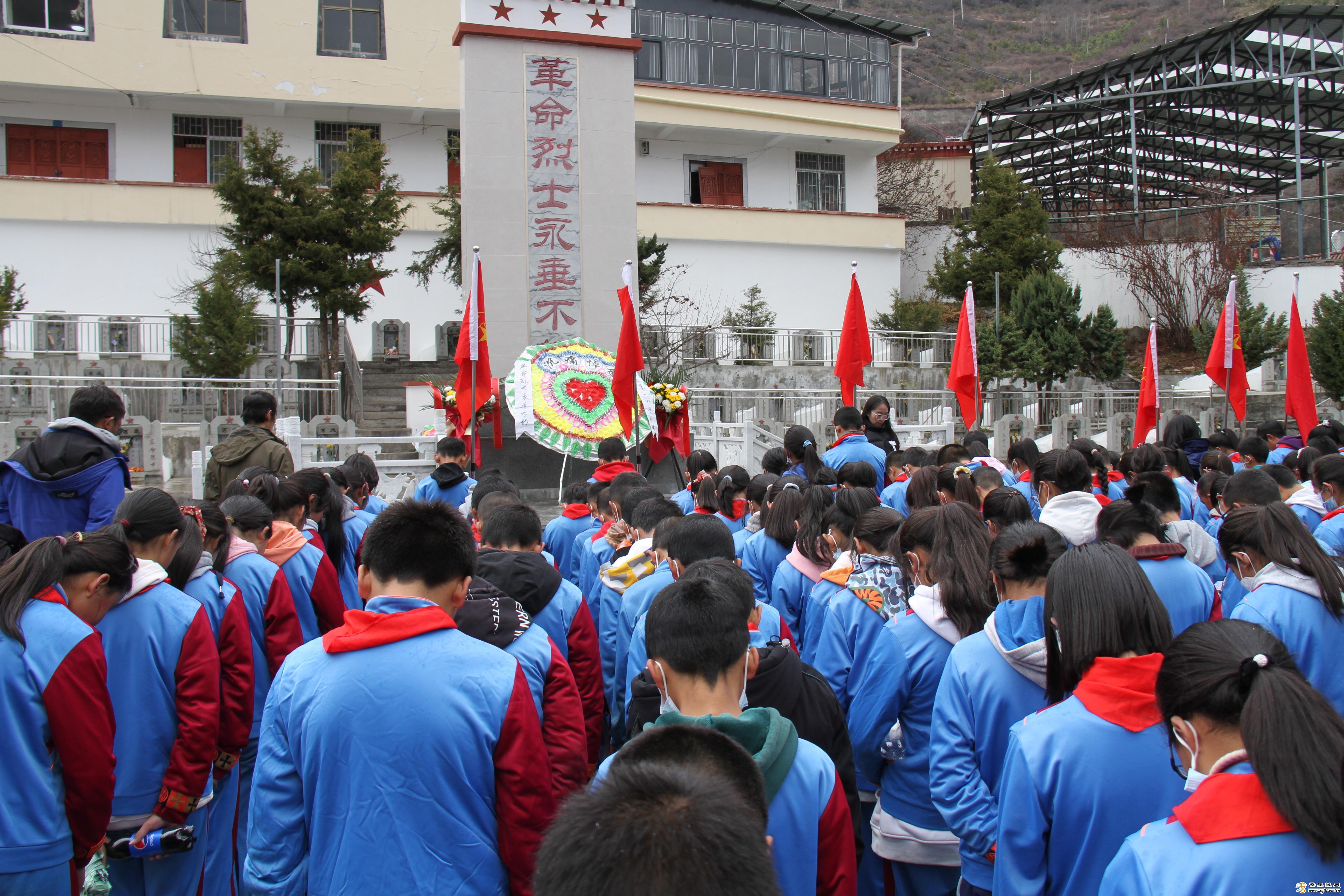 清明節(jié)當(dāng)天,德欽縣烈士陵園里,德欽縣第一小學(xué)的少先隊員們在老師的帶領(lǐng)下,開展了“尋訪紅色蹤跡、瞻仰革命遺跡社會實踐活動----紅色精神代代傳”清明節(jié)祭奠英烈主題活動。少先隊員們向先烈敬獻花圈,全體隊員向革命烈士默哀,學(xué)生代表上臺進行了熱情洋溢的獻詞,活動號召所有青少年學(xué)生時刻銘記烈士們?yōu)榻夥艊液兔褡宥幌奚拇鬅o畏的英勇事跡,向烈士們學(xué)習(xí)頑強拼搏的精神。