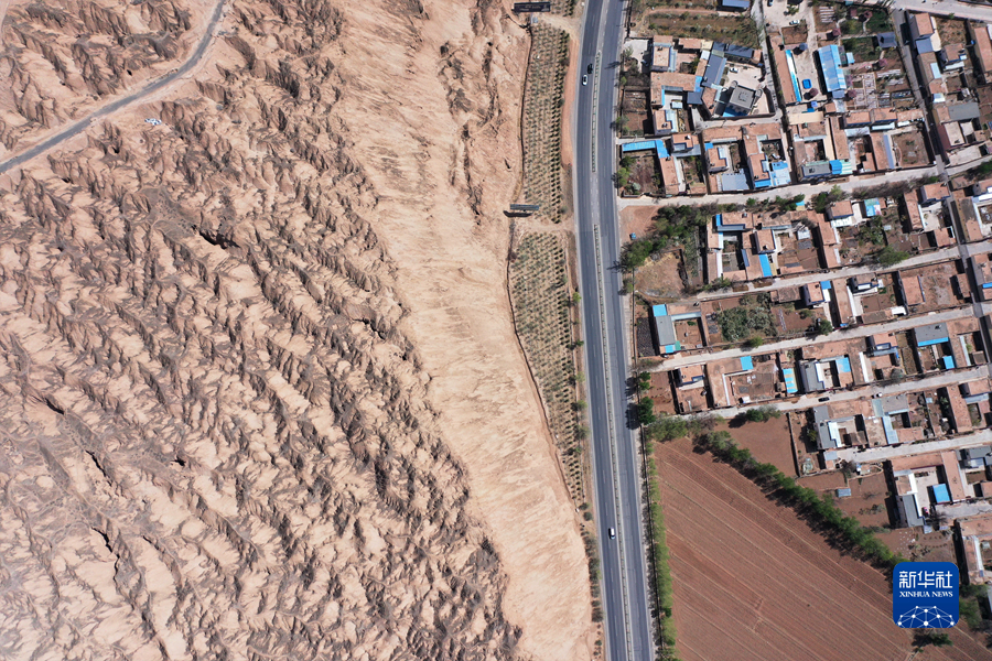 這是4月17日拍攝的青海省海南藏族自治州貴德縣境內(nèi)的丹霞地貌(無人機照片)。新華社 耿輝凰 攝