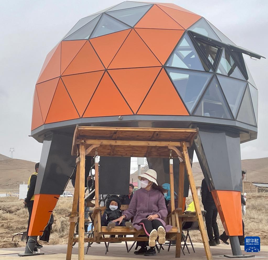 27日,游客在活動(dòng)現(xiàn)場(chǎng)體驗(yàn)星空房和戶(hù)外秋千。 新華社記者 周盛盛 攝