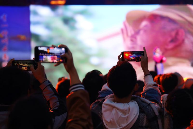 演唱會結(jié)束后,“彩云之南等你來”世界的香格里拉歡迎您——夜間群眾文藝演出活動隨即開始,現(xiàn)場燈光閃爍,游客與當(dāng)?shù)厝罕娨黄?,圍著廣場中央的篝火載歌載舞,盡情體驗縱情舞蹈的歡樂。