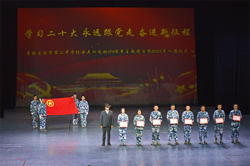 在文藝匯演前,學(xué)校為8位優(yōu)秀團(tuán)員頒發(fā)證書,并舉行了紀(jì)念五四運(yùn)動104周年主題團(tuán)日暨2023年入團(tuán)儀式,65名新團(tuán)員佩戴團(tuán)徽莊嚴(yán)宣誓。[詳細(xì)] -
