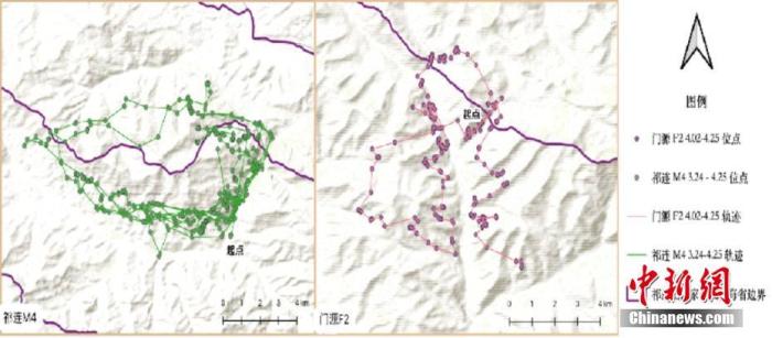 資料圖為被追蹤雪豹活動(dòng)點(diǎn)位分布圖。中新社發(fā) 祁連山國(guó)家公園青海省管理局 供圖