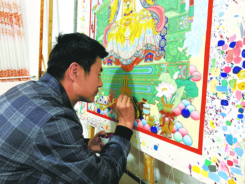 圖為熱貢唐卡。張?zhí)砀?攝