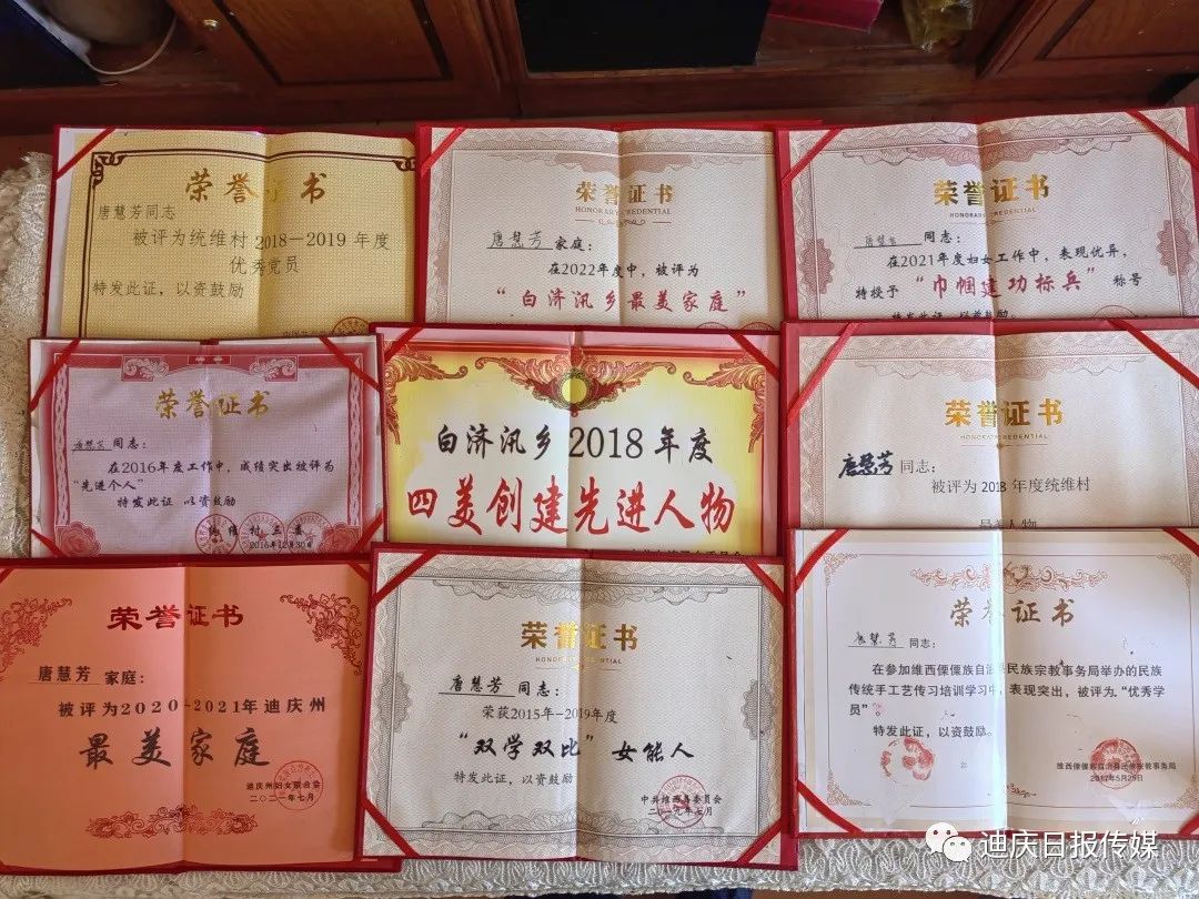 唐慧芳孝老愛親的精神不僅讓自己的公公婆婆能夠安享晚年幸福生活,也用實際行動感染了晚輩。她的家庭多次被州婦聯(lián)評定為“最美家庭”,她多次被縣、鄉(xiāng)、村評定為“最美人物”“雙學雙比”女能人、“優(yōu)秀黨員”“巾幗建功標兵”“先進個人”。她用她的樸實真誠詮釋著中華兒女尊老愛老、孝老愛親的優(yōu)秀品質,她用她的無私奉獻踐行了一名共產黨員甘當群眾的“貼心人”的莊嚴承諾!