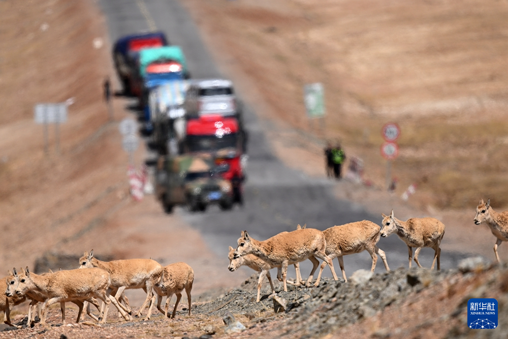 藏羚羊“過(guò)馬路”,車輛請(qǐng)注意!