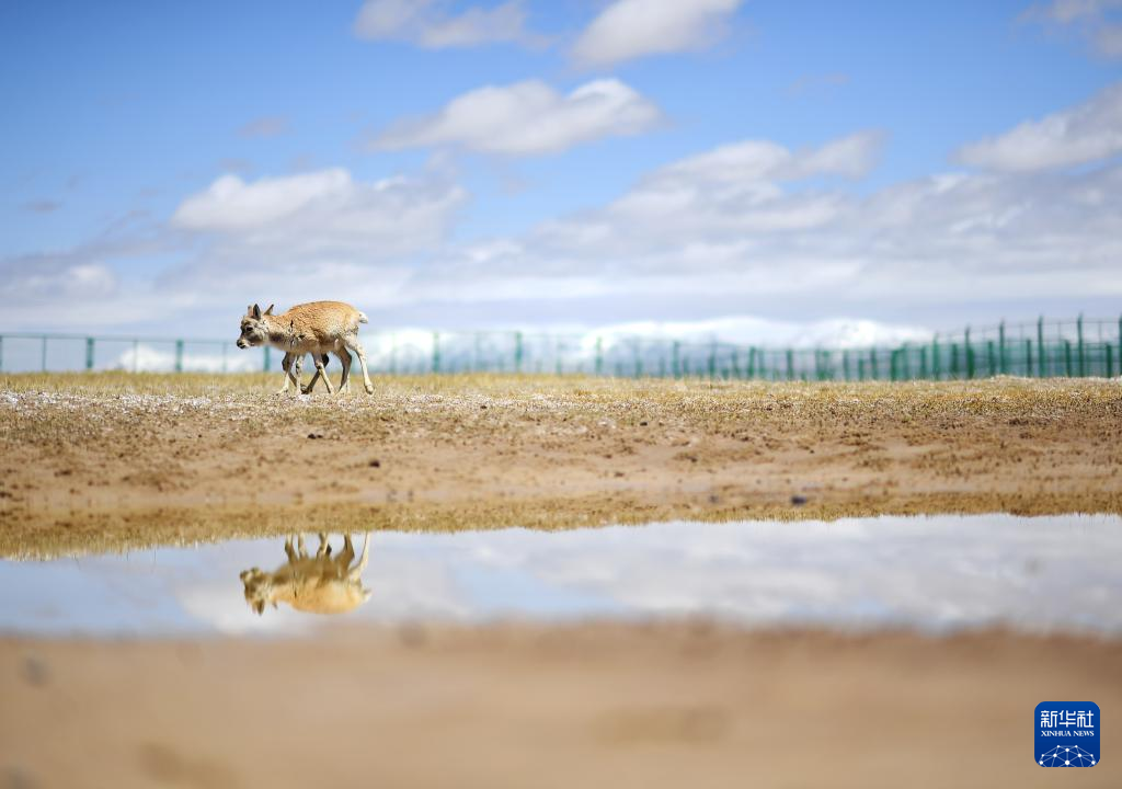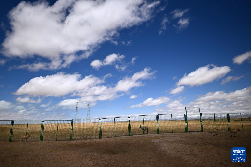 在可可西里國(guó)家級(jí)自然保護(hù)區(qū)索南達(dá)杰保護(hù)站,藏羚羊在野生動(dòng)物救助中心活動(dòng)(5月30日攝)。 新華社記者 薛玉斌 攝
