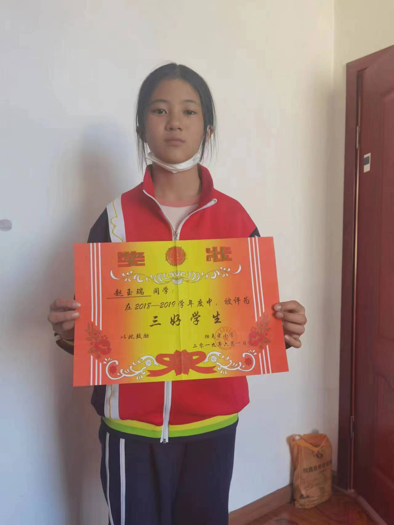 她是懂事孝順的好孩子。格桑拉姆經(jīng)常幫助家人做一些力所能及的家務(wù),打掃衛(wèi)生、洗衣服,給爺爺捶背,為父母泡茶端水,因?yàn)樗屢患胰俗兊酶悠錁啡谌凇I钪?,她勤儉節(jié)約,寫完的作業(yè)本重復(fù)利用,當(dāng)草稿紙;校服褪色了也不舍得讓父母買新的。學(xué)校里,她是一個(gè)品學(xué)兼優(yōu)的好學(xué)生,刻苦學(xué)習(xí),認(rèn)真聽講,積極參與小組活動,大膽發(fā)言,學(xué)習(xí)成績優(yōu)異,多次獲得學(xué)校的各種表彰。