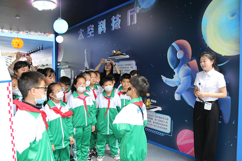 在軍工科技廳的運20模型前,“小軍迷”熊子睿熱情地向同學(xué)們介紹起這架飛機(jī)的構(gòu)造、功能和優(yōu)點。[詳細(xì)] -