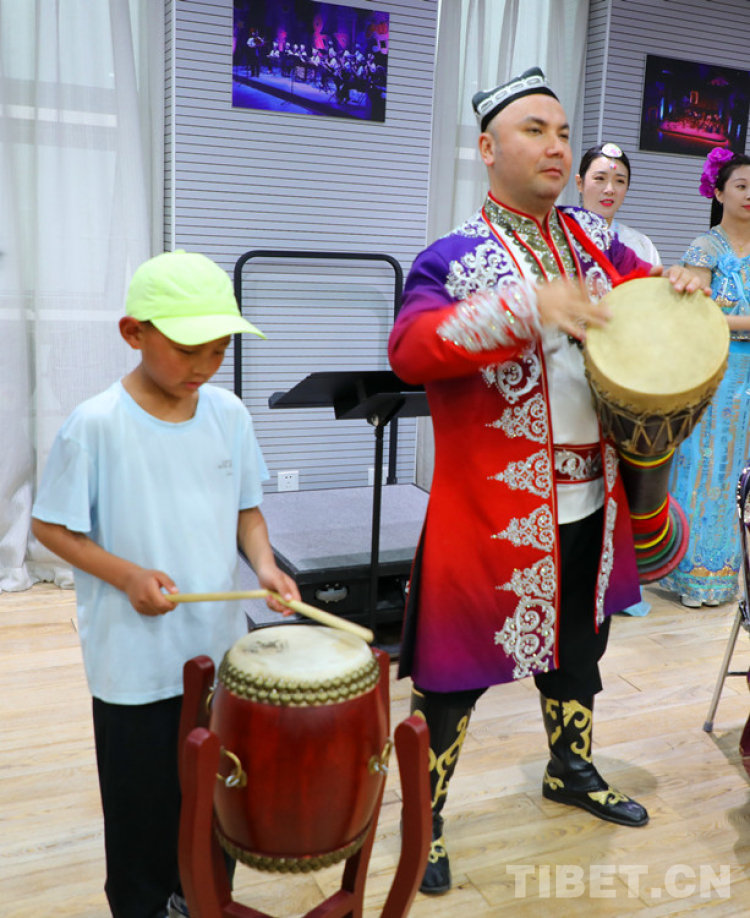 各位藝術(shù)家老師們能歌善舞,為他們帶來(lái)不同民族的藝術(shù)表演。時(shí)間不長(zhǎng)的參觀過(guò)程卻讓孩子們體會(huì)到祖國(guó)大地上不同民族藝術(shù)的魅力。