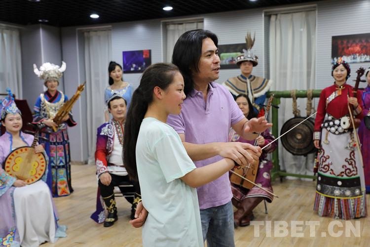 圖為玉樹(shù)姑娘體驗(yàn)做樂(lè)隊(duì)指揮的快樂(lè) 攝影:王茜