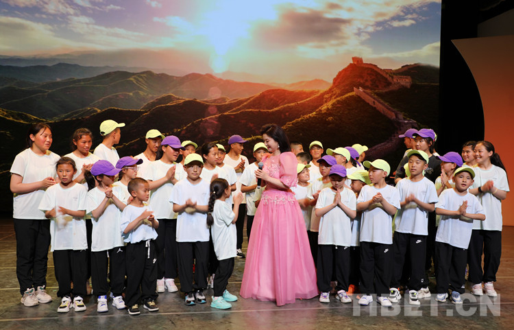圖為孩子們?cè)谖枧_(tái)上和中央民族歌舞團(tuán)國(guó)家一級(jí)歌唱家劉媛媛共同表演 攝影:王茜