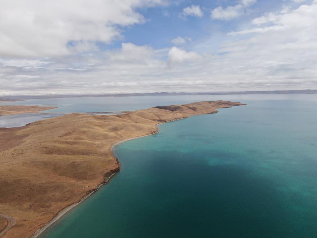 從空中俯瞰,地處青海省果洛藏族自治州瑪多縣的扎陵湖一碧萬頃,景色秀美。微風襲來,湖面漣漪四起,不時有斑頭雁、赤麻鴨等野生鳥類掠過。這里,是更登堅措從小生活的地方。